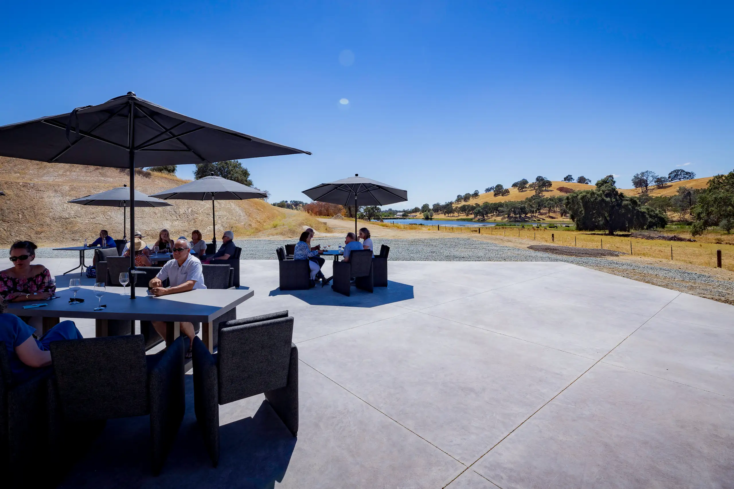 A Grand Room, A mezzanine, Outdoor Patio, and Outdoor Kiln, hosting up to 250 guests. Celebrate your milestones with views of the lake and rolling hills at our Amador venue.