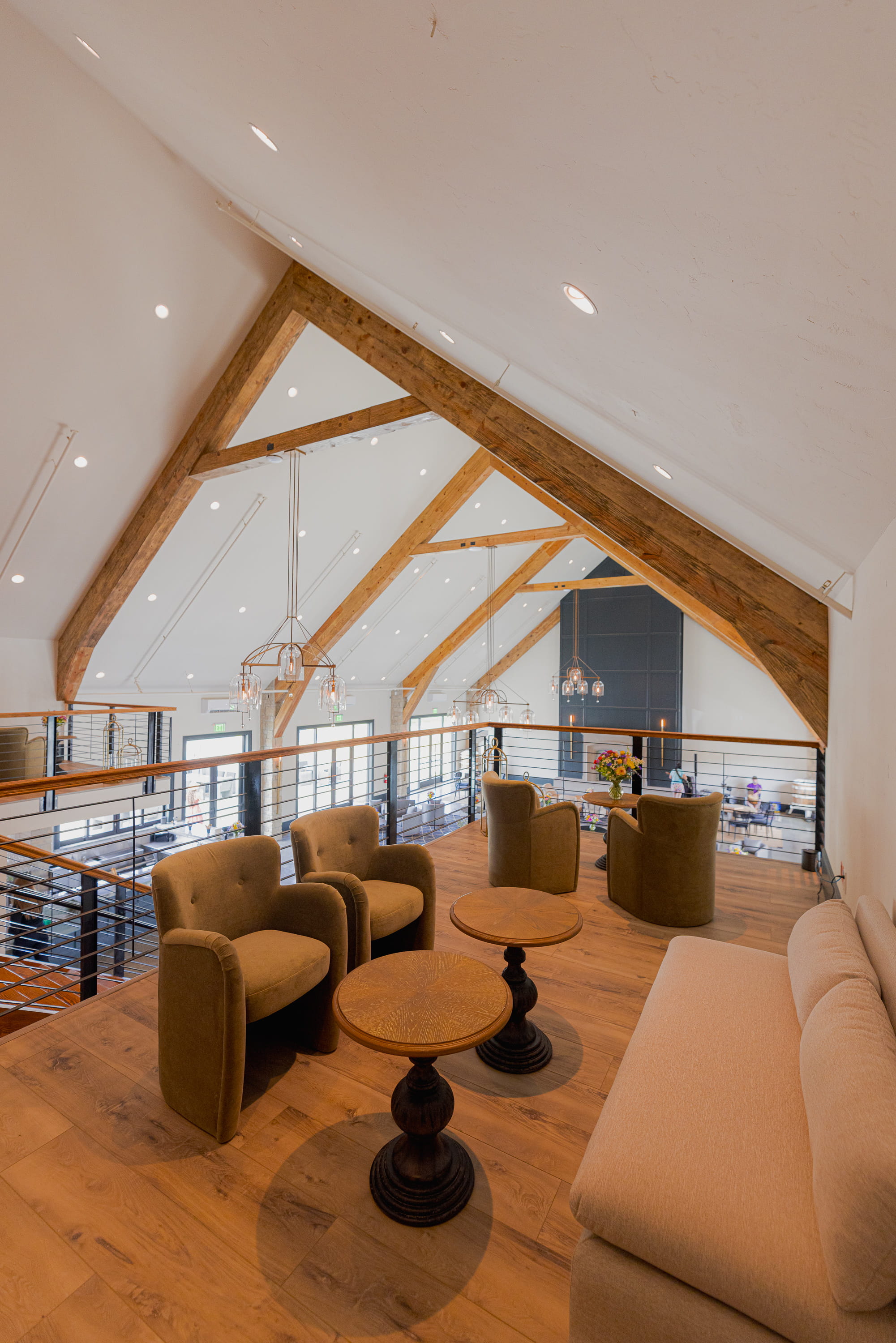 Our Mezzanine with balconies overlooks the Grand Room, and it’s attached to two private suites. This space is perfect to host a small gathering, a corporate meeting of 10 or 30 guests, or use as a wedding day suite. Mezzanine booked for any event or gathering, comes with a complementary access and use of the private suites attached.